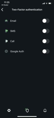 Dále aplikace umožňuje aktivaci dvoufaktorového ověření. Není to nutnost, nicméně opět se jedná o možnost, kterou vám můžeme jen doporučit. Dvoufaktorové ověření je možné uskutečňovat skrze email, SMS, hovor nebo přeš Google Authenticator. Pak už nic nebrání tomu začít peněženku používat.