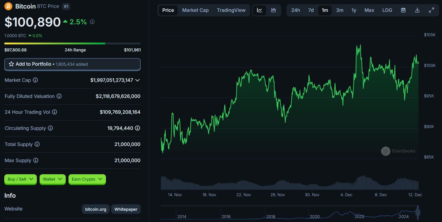 Cena bitcoinu se pohybuje kolem 100 000 USD, přičemž analytici očekávají další růst. Některé predikce naznačují, že bitcoin by mohl dosáhnout až 180 000 USD díky institucionálnímu zájmu a pro-kryptoměnovým regulacím.