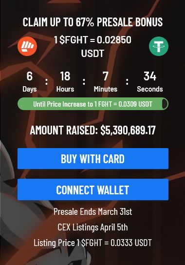 Pro potenciální investory zmiňujeme informaci, že předprodej tokenů $FGHT bude brzy končit. Abyste si tak stihli zajistit nízké ceny, je třeba nějaké tokeny nakoupit ještě před postupem celého předprodeje do další fáze či jeho ukončením. K nákupu tokenů můžete používat také platební kartu. Postup se nicméně příliš neliší od toho, který zmiňujeme níže.