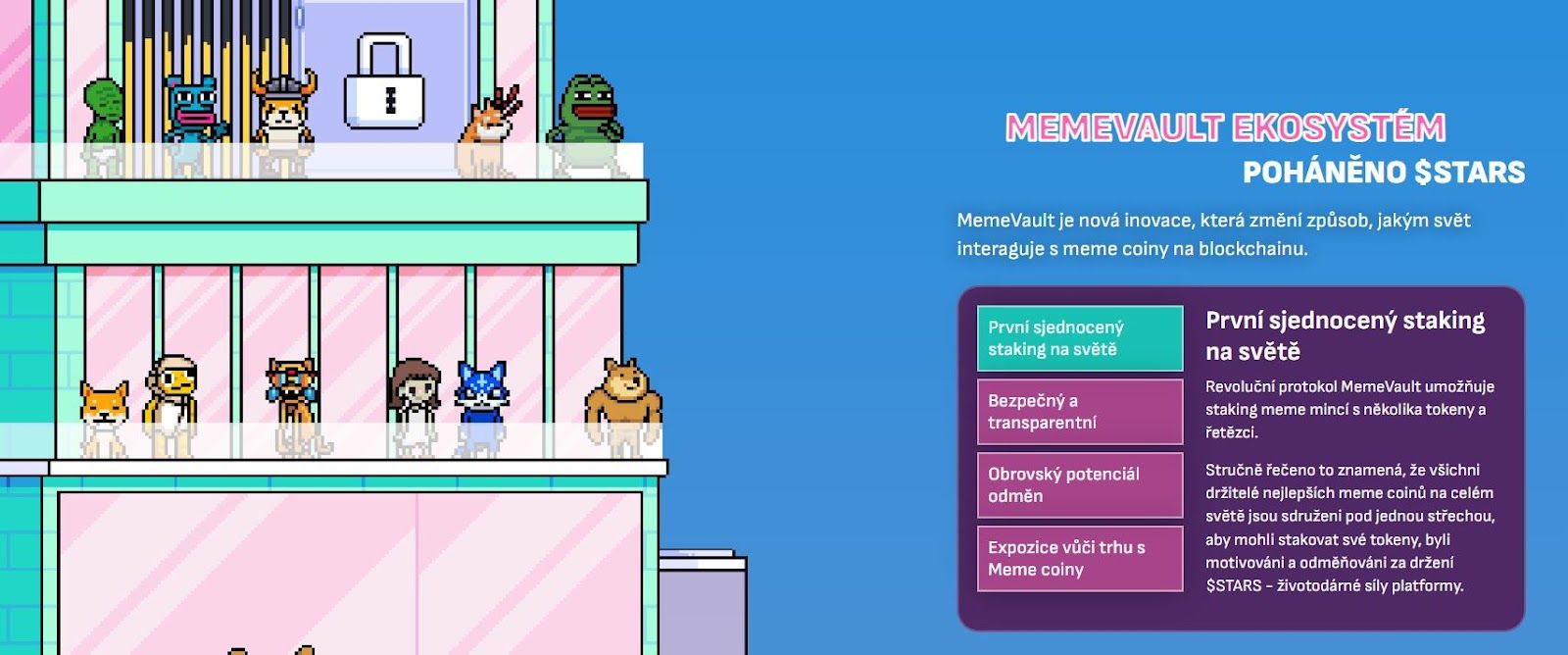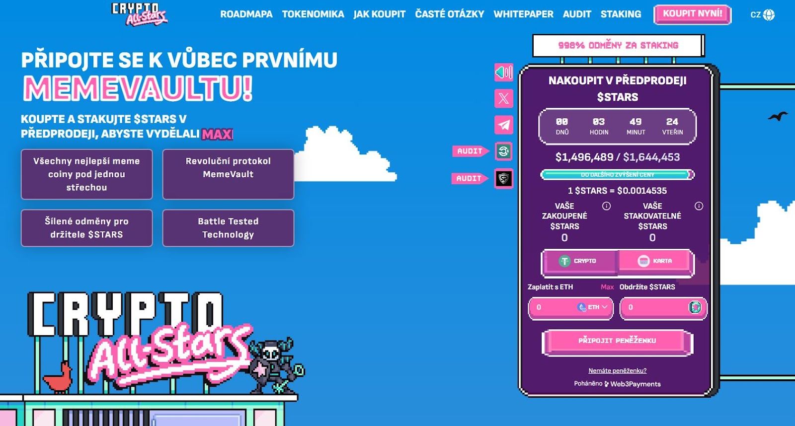 - Crypto All-Stars – Inovativní kryptoměnový projekt zaměřený na staking meme coinů a generování odměn prostřednictvím systému MemeVault.