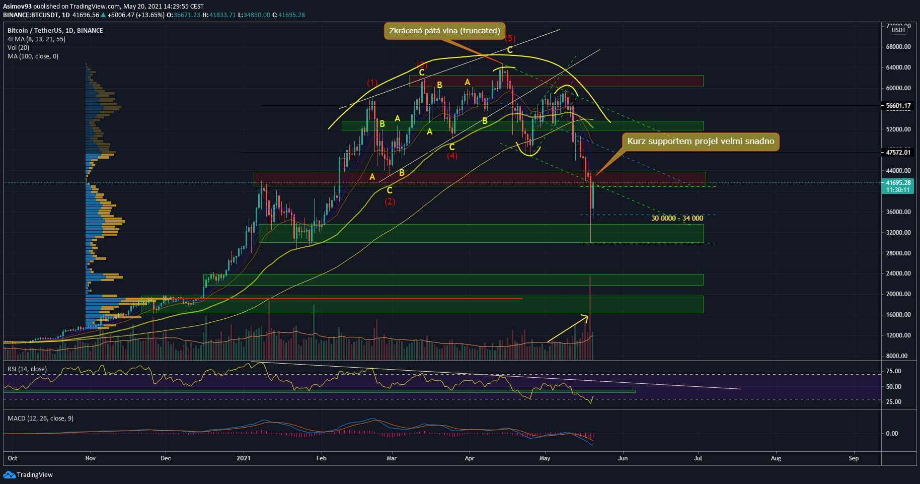 Jak bylo uvedeno v dnešní textové analýze na Bitcoin (BTC), trh se sice dokázal silně odrazit od supportu na 30 000 USD, ale samotná ztráta 42 000 USD v těchto chvílích nasvědčuje tomu, že býčí struktura trhu je s největší pravděpodobností zlomená.