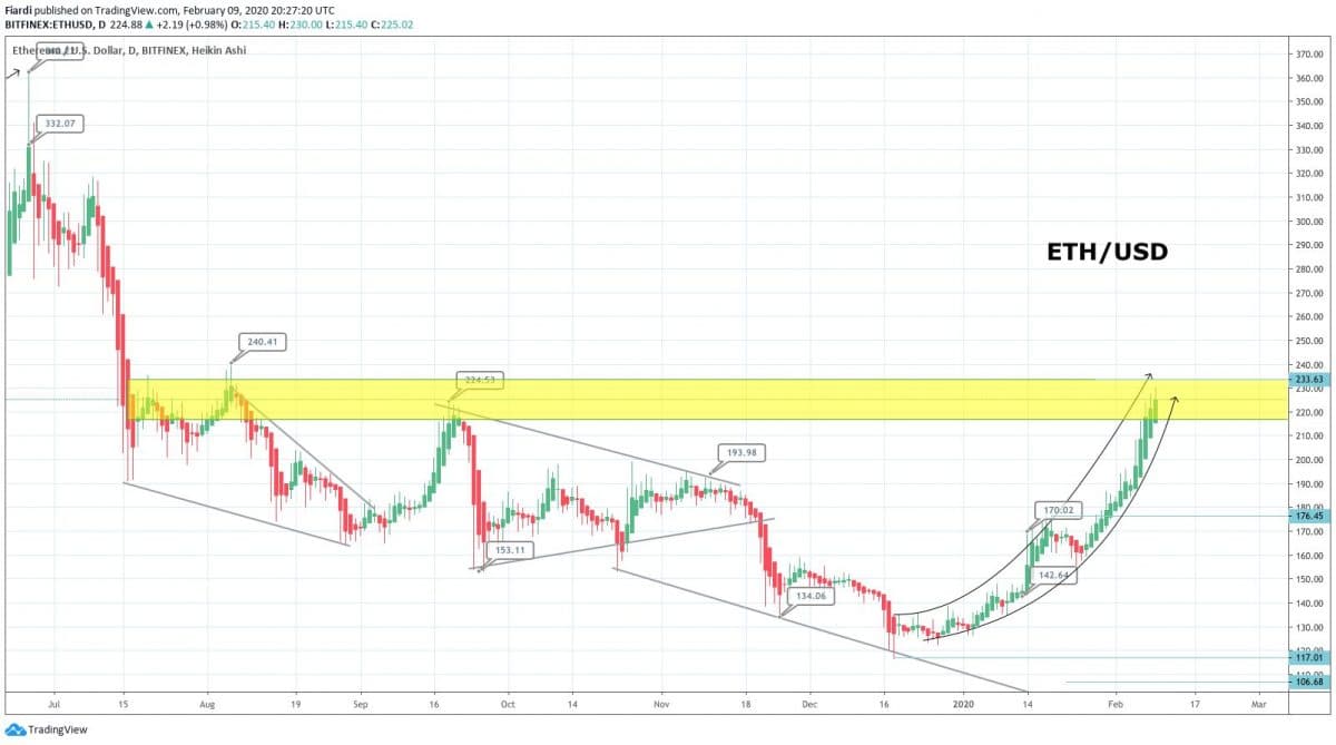 [ETH/USD] V roce 2020 k současné hodnotě: +74 %