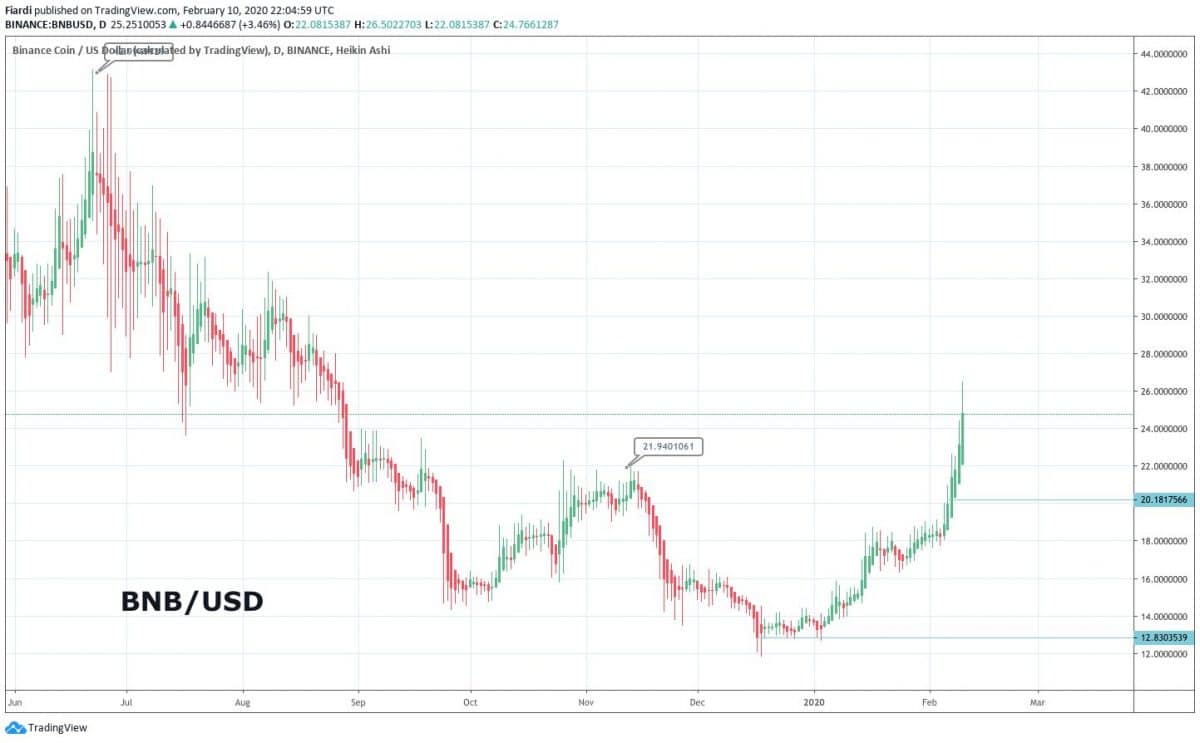 [BNB/USD] V roce 2020 k současné hodnotě: +81,60 %