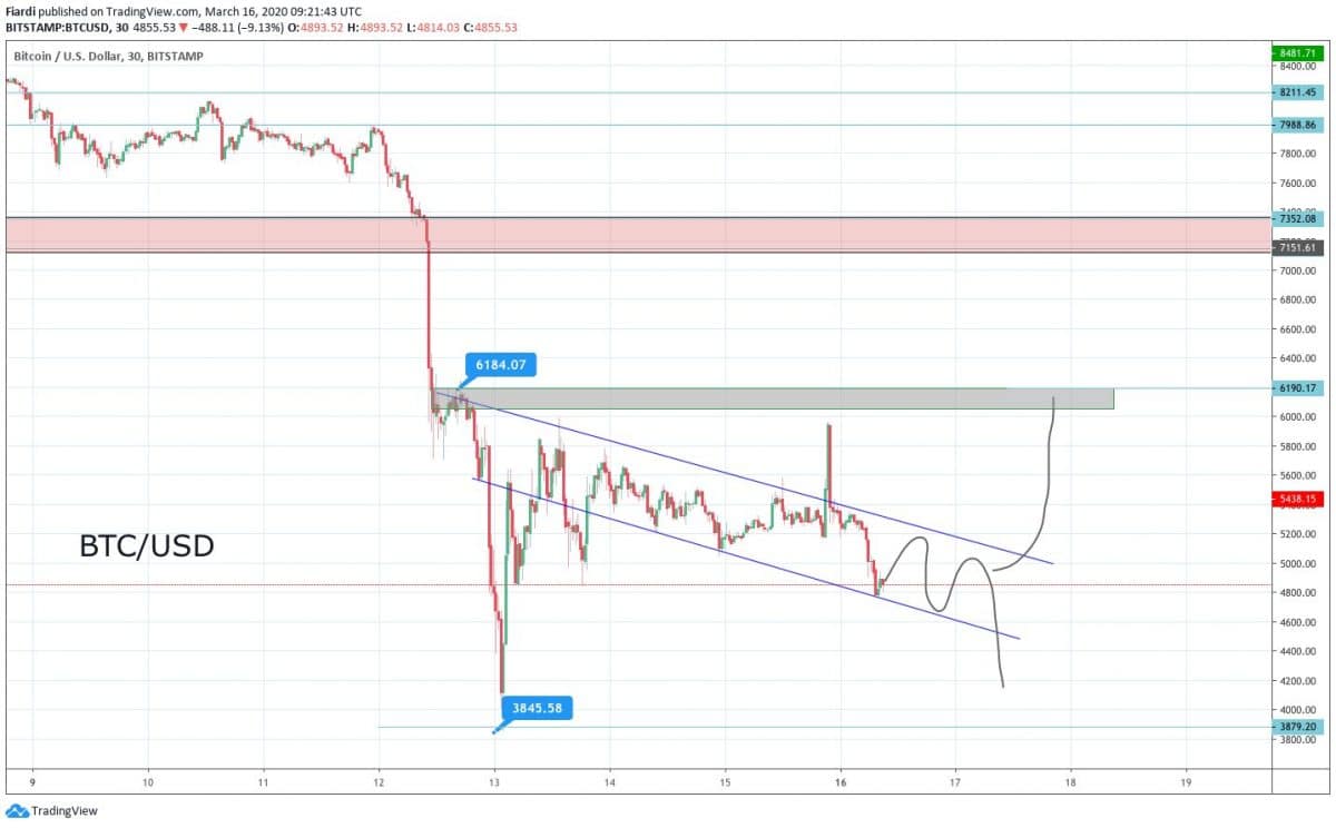 Jen dobré zprávy z US nás mohou zachránit, ale po prohlášeních Donalda Trumpa, kde ekonomická mezení začnou, nevidíme prostor na velký růst. Stejně tak nevidíme růst na Bitcoinu z pohledu nových investic. Lidé mají teď jiné priority než investování a to jsou potraviny, drogerie, strach ze ztráty zaměstnání, podnikání, splácení hypotéky, auta a pod. Pokud máme čekat výrazný růst na Bitcoinu, tak až po této krizi. Ale i tak můžeme vidět, že například v Číně, kde již ze klidnění situace ohledně koronaviru došlu, nové investice na BTC nepřibývají. Znamená to buď nezájem o Bitcoin, nebo to, že si investoři myslí, že to padne ještě hlouběji.
