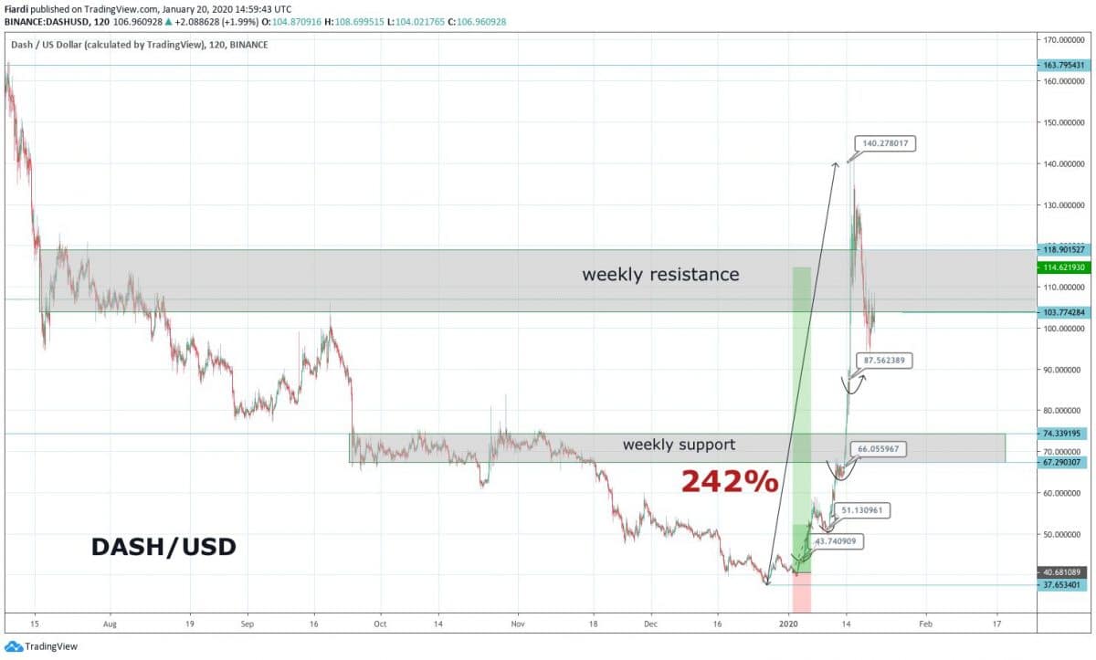 Dash (DASH) $105,02 USD (9,04%)