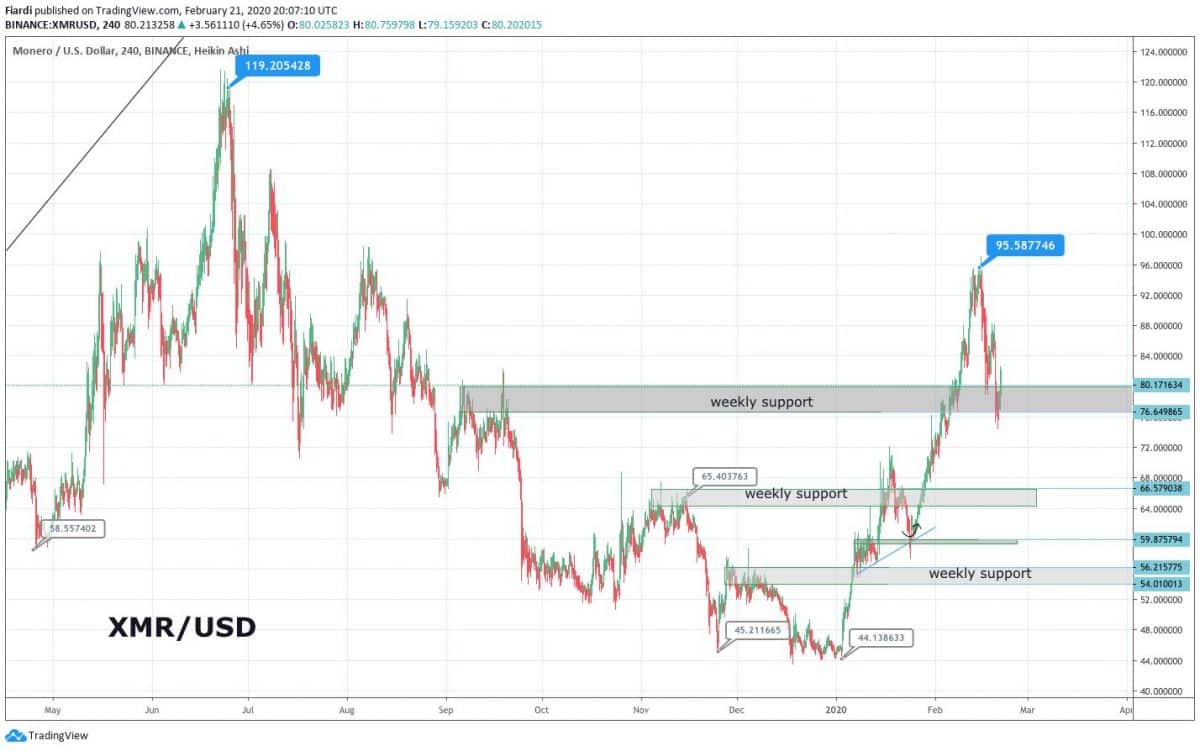 [XMR/USD] V roce 2020 k současné hodnotě: +80 %