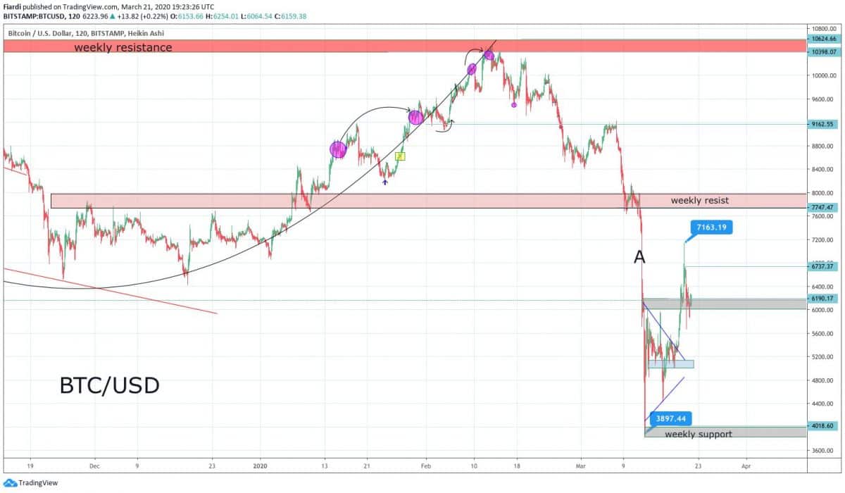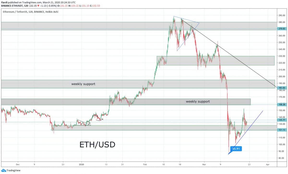 Bitcoin se v pátek propadl z 7 100 až na 5 900 USD. Důvodem je s největší pravděpodobností negativní zavření světových trhů. V sobotu vidíme cenu BTC na 6 200 USD. Nejbližší podporu máme na 6 000 USD a bulls ji zatím drží. Vidíme snad již pomyslné světlo na konci tunelu? Nemyslím si. Propady na trzích, ať už světových nebo těch kryptoměnových, vyvolaly ekonomická omezení ve světě. Pokud se situace s koronavirem nedá do pořádku, tak budou tato ekonomická omezení pokračovat i nadále, což bude mít další negativní dopad na ekonomiku. Nejbližší podpora pro Bitcoin je na 6 000 USD.