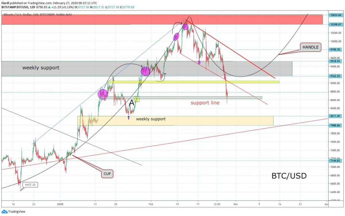 Bitcoin se včera propadl o dalších 4,62 %. Padli jsme včera hluboce až na 8 530 USD. Masivní propady začínáme poté, co jsme odmetli oblast odporu na 10 500 USD. Zažíváme fakt těžké dny a z těchto propadů se Bitcoin vylíže jen velmi těžko a bude to trvat déle. Momentální podporu hledáme na 8 600 USD, kde jsme se včera zastavili a dnes bychom měli o tuto podporu bojovat. Pokud bude podpora prolomena, můžeme klesnout na nižší podporu 8 200 USD.