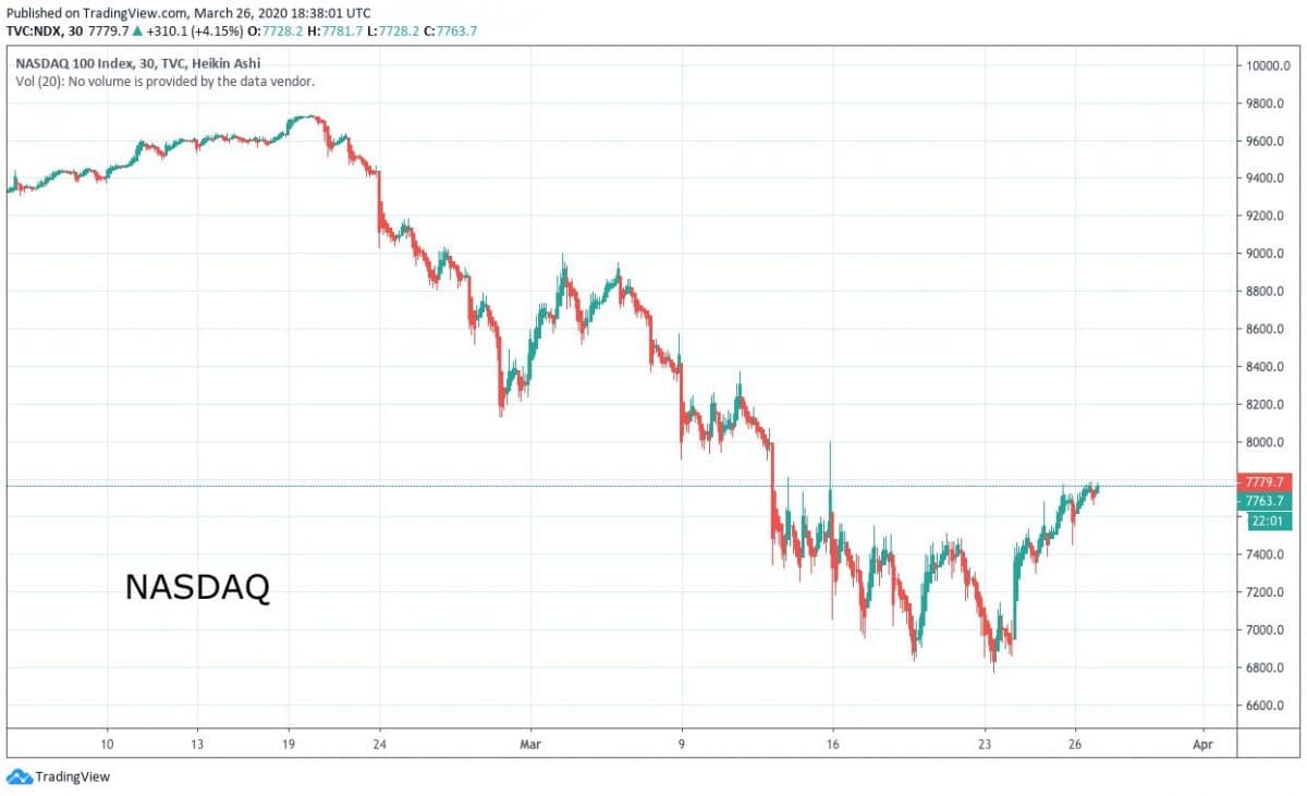 Bitcoin se po propadu na 3 800 USD dostal nad 6 000 USD a dnes se pohybuje na 6 600 USD. Podobné uklidnění vidíme také na indexech NASDAQ, DOW J. a SP 500. Akciové trhy a indexy US mají přímý dopad i na Bitcoin, který se v posledních 2 měsících chová přesně podle nich. Momentální pohyb v kanálu do strany můžeme vidět i na světových trzích. Je tu ale jedna zásadní otázka. Jak dlouho budou centrální banky provádět kvantitativní uvolňování a dotovat tak stát a firmy? Je to jen náplast a z dlouhodobého hlediska půjdeme nejspíše dolů, jak se bude situace kolem koronaviru v USA a Europě vyhrocovat. Jen čas ale ukáže, jak to nakonec bude. Ale v horizontu 2 – 3 měsíců předpokládám, že investoři budou negativně naladěni.
