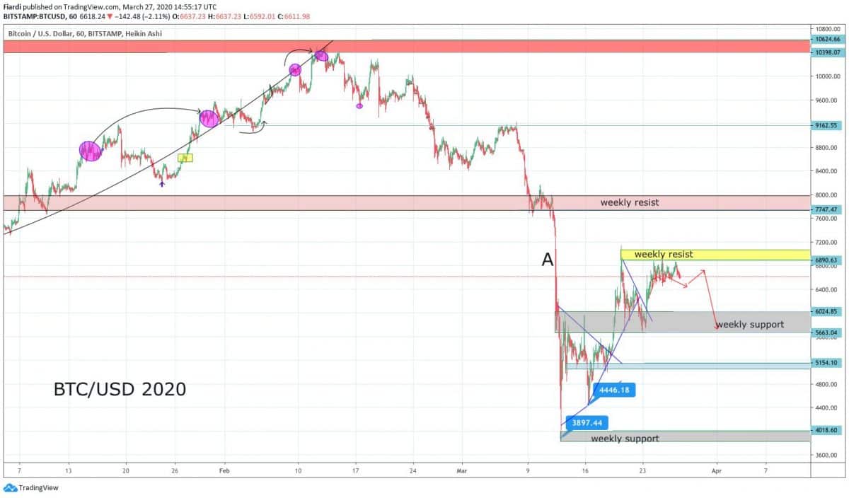 Bitcoin se dnes (stejně jako včera) pohybuje na 6 600 USD a prakticky se dá říci, že v tomto týdnu máme klid a Bitcoin se pohybuje ve vymezeném kanálu. Momentální odpor zůstává na 7 100 USD a podporu hledáme na 6 000 USD. Aktuálně vidíme klid i na NASDAQ, a to je důvod uklidnění situace i na Bitcoinu. Nebudeme znovu psát, proč tomu tak je, to už tu píšeme dost dlouhou dobu v přehledu trhu. Jistou věcí ale je, že se Bitcoin nechová jako digitální zlato, ale spíše jako akcie a to znamená, že nemůžeme v době krize čekat masivní růst Bitcoinu. Pokud čekáme růst, který překoná ATH z roku 2017, tak až po této krizi.