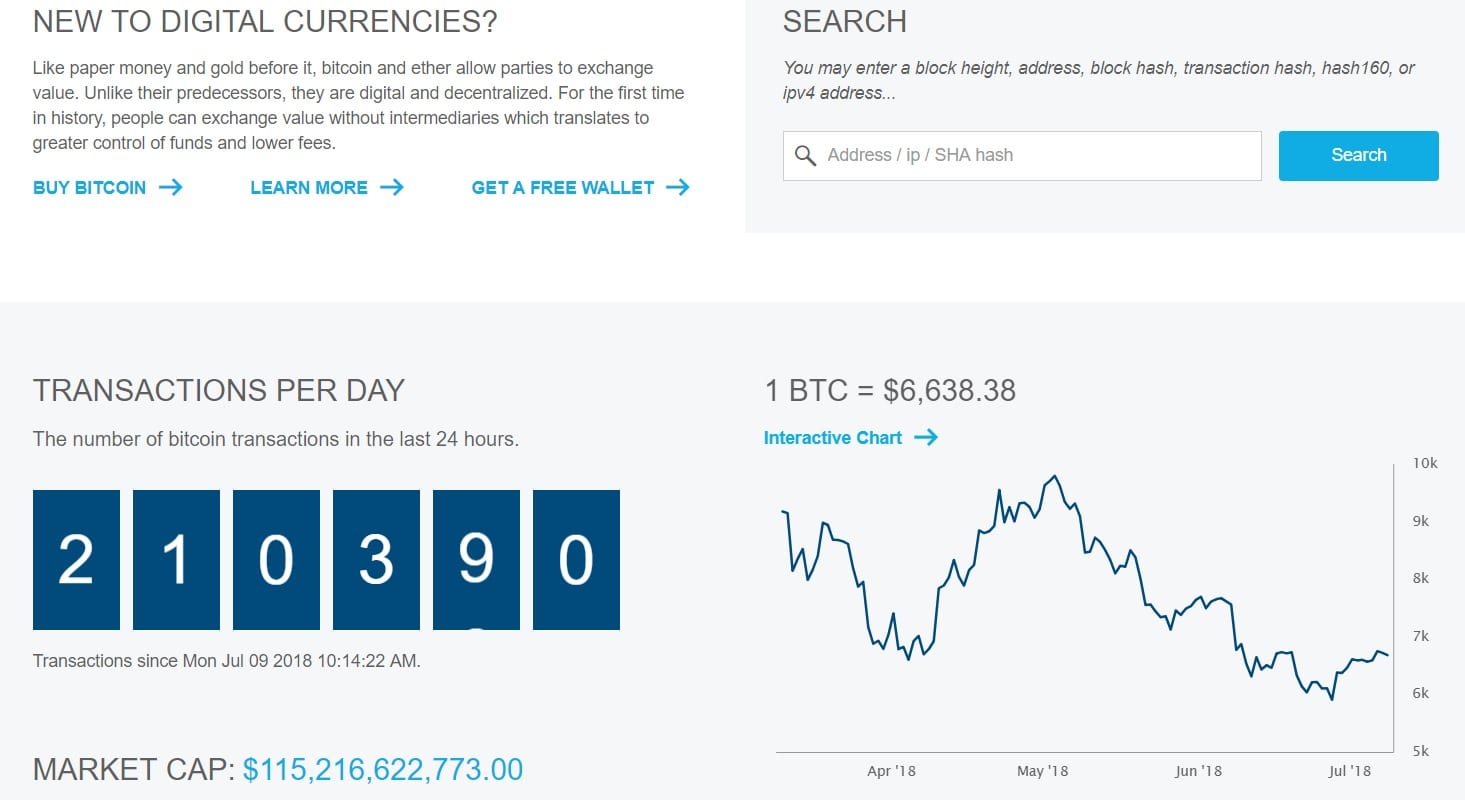 Rovněž nabízí statistiky týkající se počtu transakcí, hash rate a marketcap za posledních 24 hodin. Jako bonus umožňuje vytvořit peněženku, přičemž uživatelské prostředí, jakož i samotný proces jejího generování, jsou vskutku jednoduché, o čemž svědčí již více než 26 milionů peněženek, jež zde byly vytvořeny.