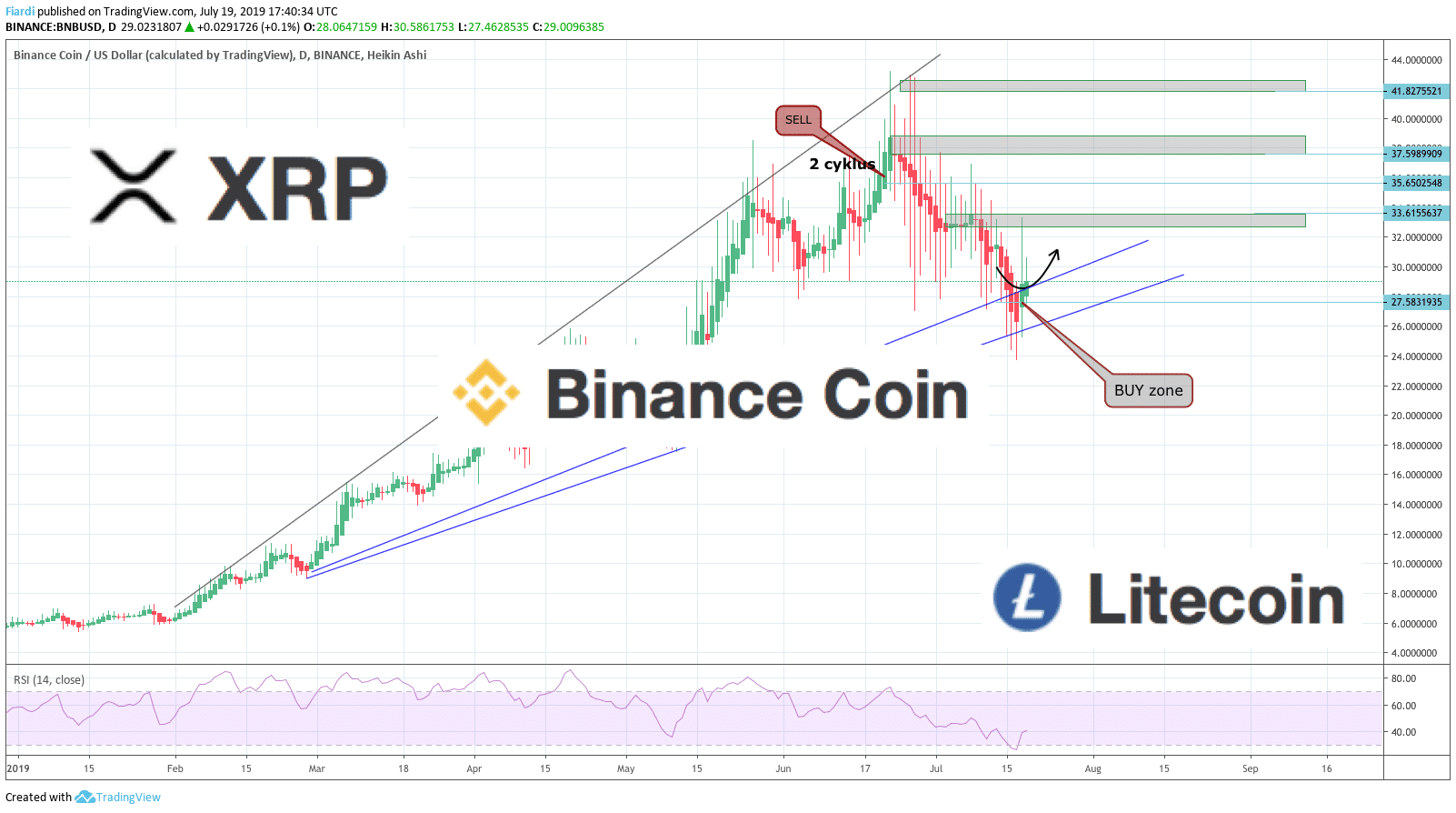 Dnes se podíváme na trojici coinů a jejich vývoj po propadu. Jak bude vypadat LTC do halvingu? Binance coin klesl na 24 USD, je již čas na nákup? XRP je znovu na silné podpoře 0,30 USD.