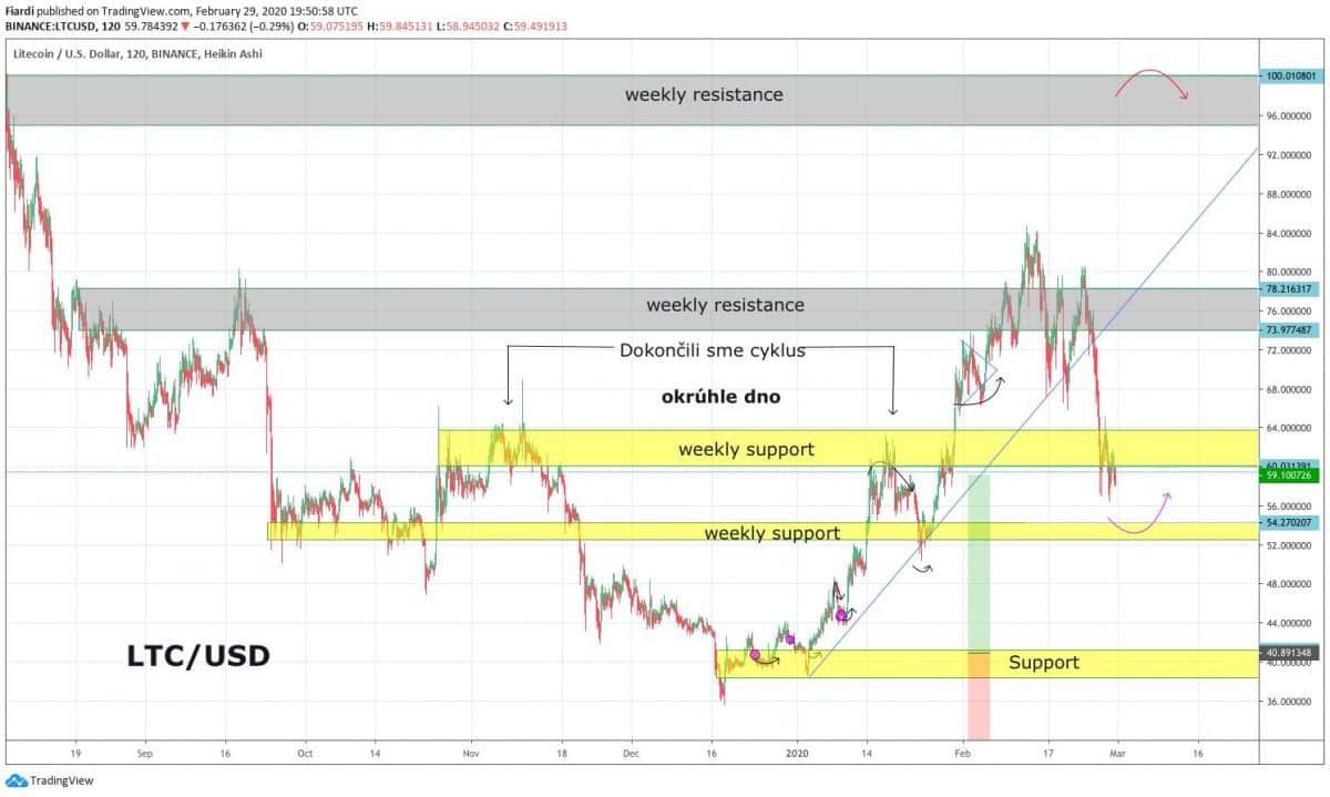 High Litecoinnu vidíme v roce 2020 na hodnotě 84 USD. Zajímavé na celém Litecoinu je jeho hluboká podpora až na 54 USD. O tuto podporu budou chtít bulls bojovat a udržet ji. Stejně jako u Monera, tak platí i pro Litecoin, že je nutné sledovat světové indexy, protože pokud nastane panika, může to být velmi špatné. Určitě to bude mít dopad na Bitcoin a kryptoměny obecně, jak to vidíme i nyní. Třeba se lze připravit i na možnost, že když se situace zhorší, můžeme propadnout ještě o dost níž. To vůbec nechci nikoho strašit, ale vyplývá to z momentální reakce trhu na omezení ekonomiky po celém světě. Bitcoin má množství podpor, ale už jsme prolomili silné podpory na 9 500 a 9 100 USD. Nejbližší podpora LTC je nyní na 54 USD a zdá se, že bulls jsou teď o víkendu zatím silnější. Nejbližší odpor bude na 73 USD. Dnešní TA na XMR a LTC není ani tak o tom, kam se vydáme. Jestli nahoru, nebo dolů, ale o tom, jaký ukazatel sledovat a ty ukazatele jsou momentálně světová média.