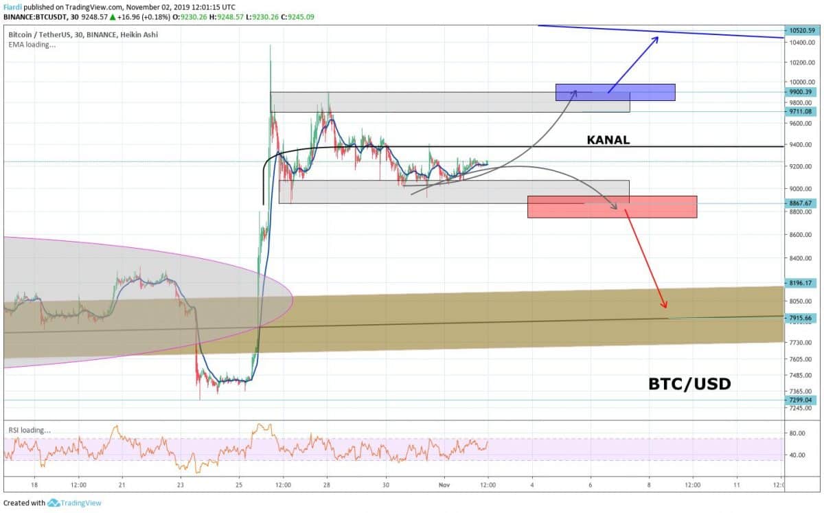 Momentálně se Bitcoin pohybuje v kanále. Pro takový kanál po masivním růstu je typické, že investoři vyčkávají na klíčové hodnoty. Tyto hodnoty jsem zakreslil do grafu. Kde chtějí vstoupit do pozícií velcí investoři? Kam se Bitcoin momentálně posune? Napříč kryptotradery můžete najít spoustu TA, no však každá z těchto lepších TA sa bude opírat o 2 klíčové hodnoty. Podívejme se tedy na možnosti, které nastanou, pokud dosáhneme těchto hodnot: