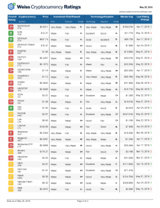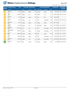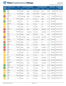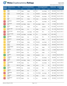 V úterý 29. května společnost Weiss Ratings zveřejnila kompletní seznam 93 kryptoměn, které hodnotila: