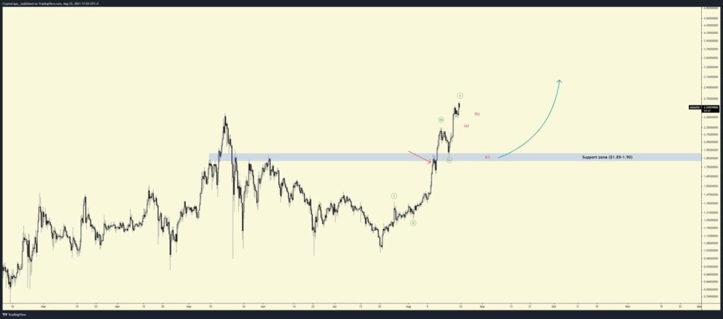 Analytik a obchodník s kryptoměnami využívá teorii Elliott Wave, přístup technické analýzy, který předpovídá budoucí cenové akce podle psychologie davu, která má tendenci se projevovat ve vlnách. Kromě zmíněné bullish predikce pro Cardano je Capo také velmi býčí na altcoinech jako celku. Influencer věří, že se celý krypto trh v nadcházejících měsících dostane opět do parabolické fáze cyklu a dočkáme se prudkého růstu altcoinů.