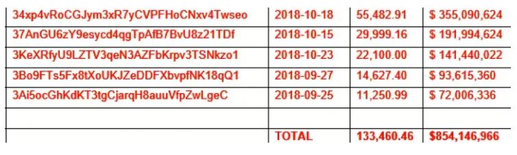 Zdá se, že aktuální cena Bitcoinu začíná být pro některé investory zajímavá. Podle stránky bitinfocharts.com, která monitoruje údaje o různých kryptoměnách, se událo několik nákupů v hodnotě vyšší než 10 000 BTC. I když se z níže přiložené tabulky nedá určit, zda dané adresy patří jedné nebo více osobám, celková částka (133 000 BTC) je skutečně enormní. V přepočtu jde o téměř 855 milionů amerických dolarů.